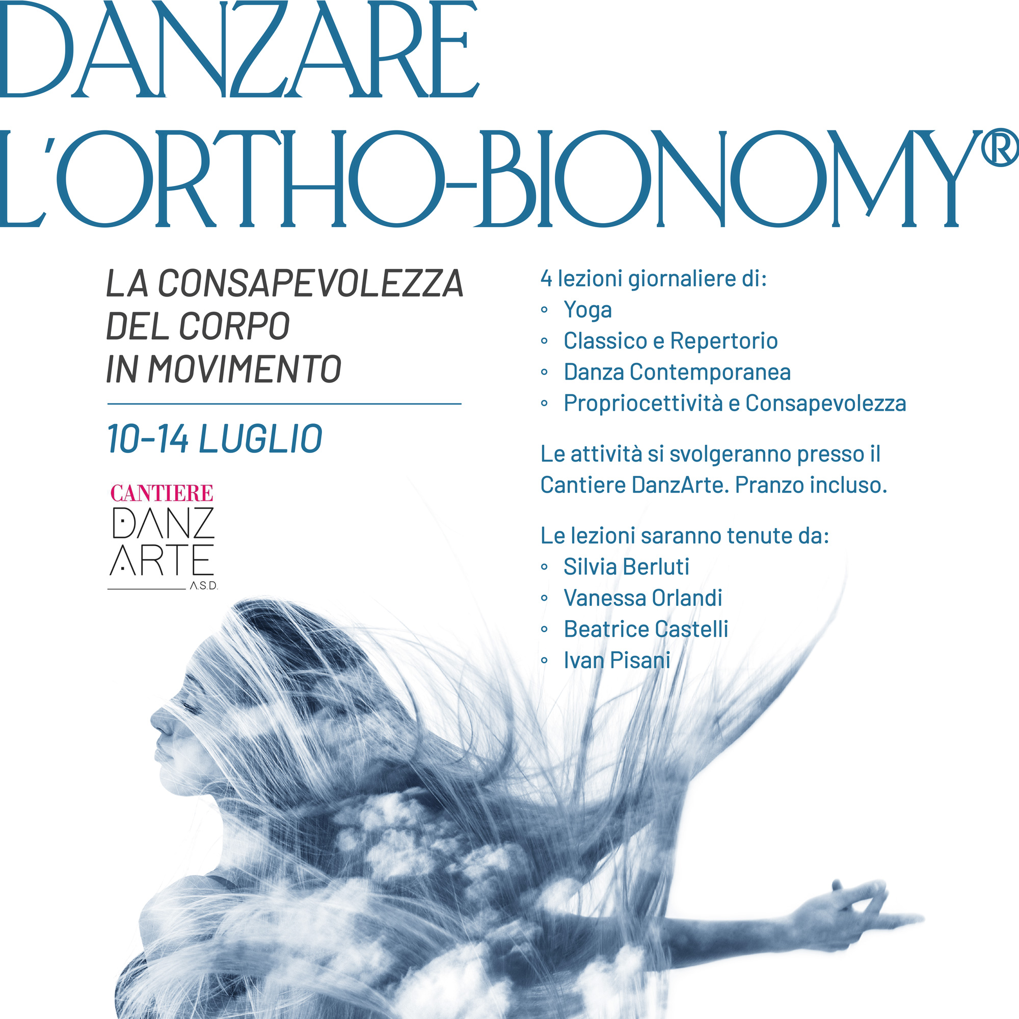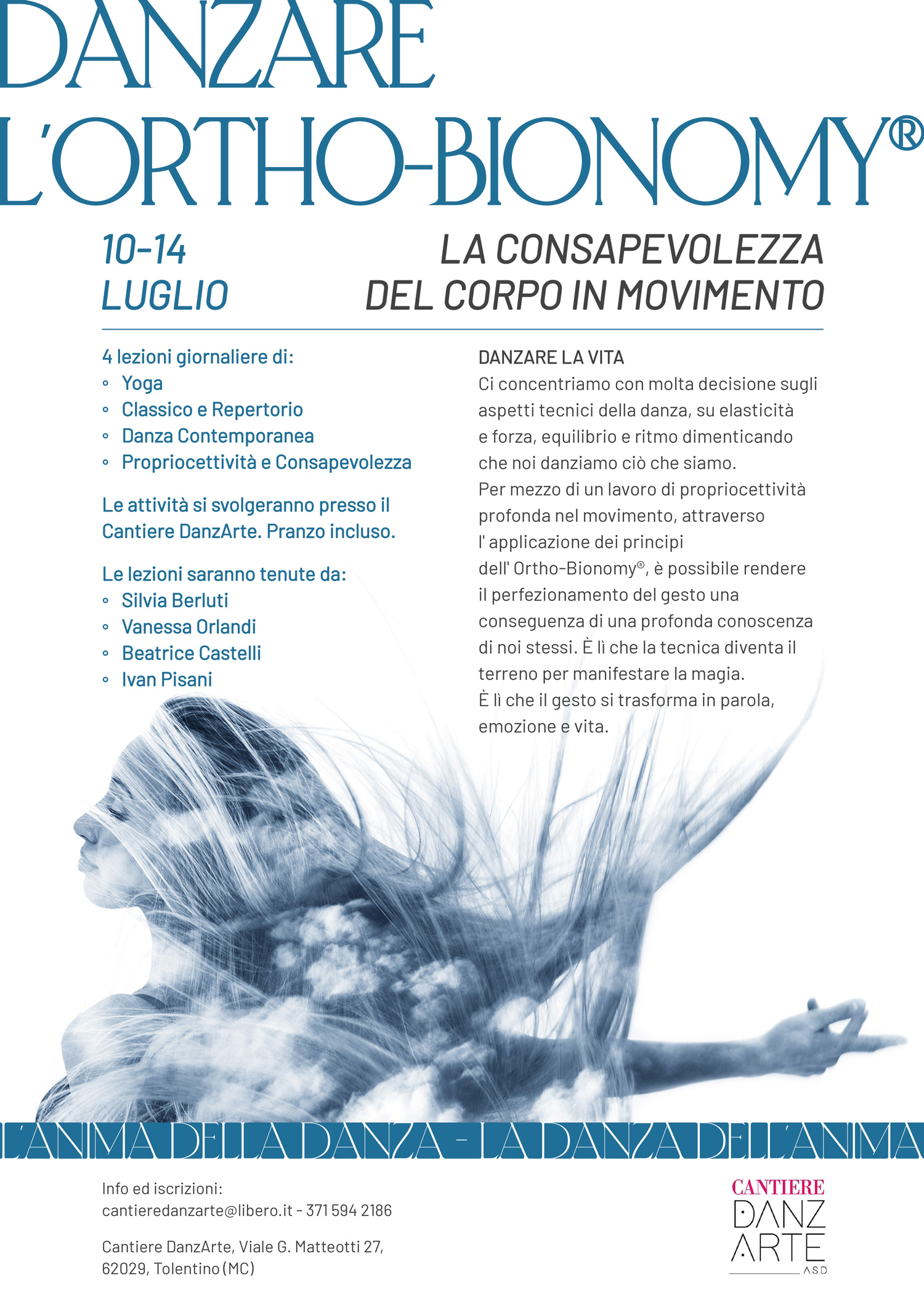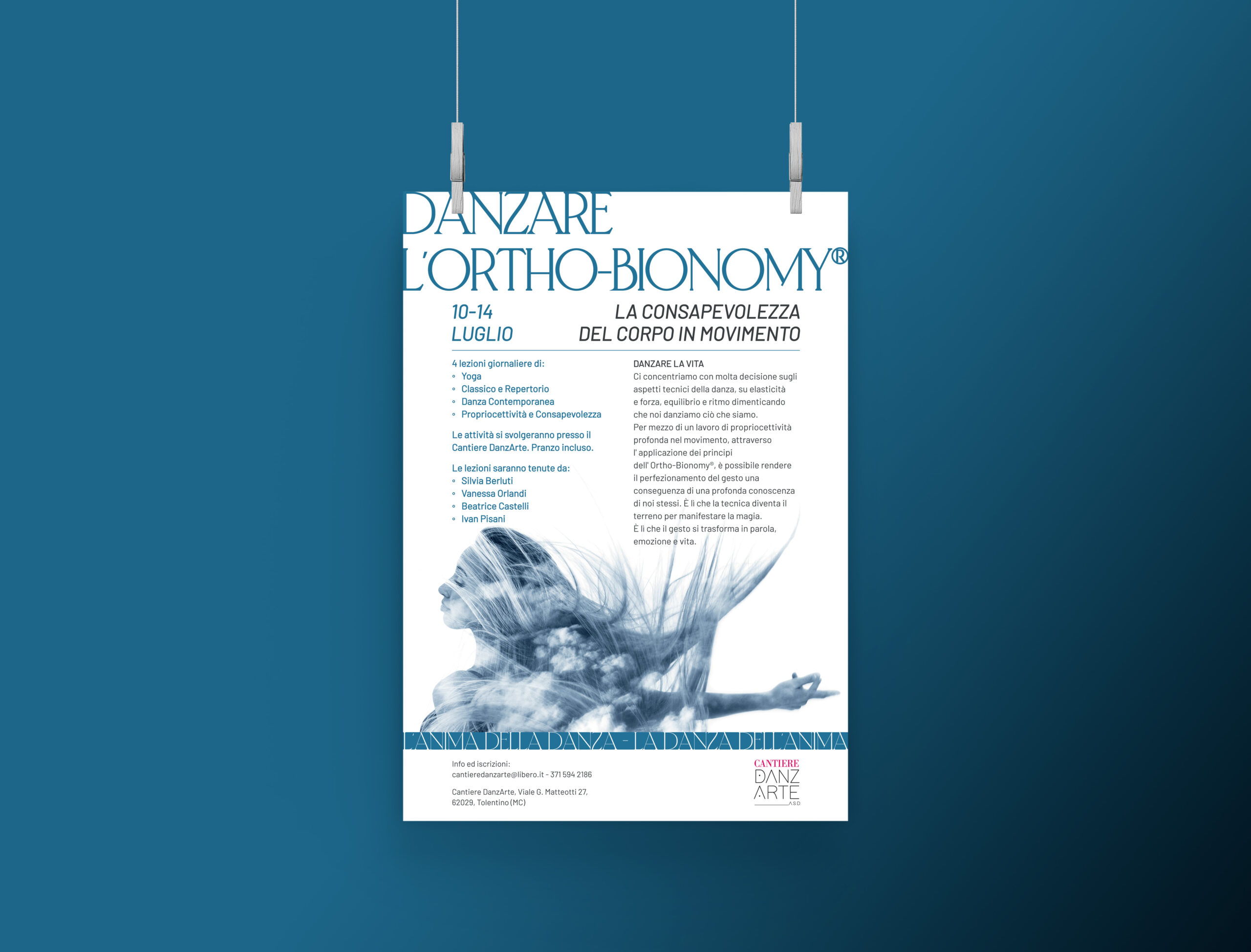 Progetto di comunicazione visiva per Danzare l’Ortho-Bionomy®, campus dedicato alla consapevolezza del corpo in movimento organizzato dalla scuola di danza Cantiere DanzArte.